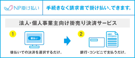 「NP掛け払い利用規約及び同社のプライバシーポリシー」に同意してNP掛け払いをご選択ください。法人/個人事業主を対象とした掛け払いサービスです。(月末締め翌月末請求書払い)